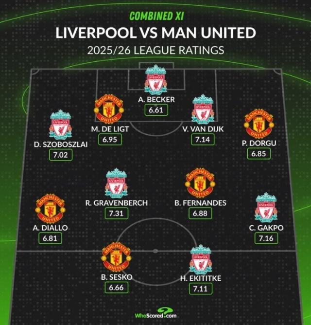 10月19日讯 本轮英超将上演曼联与利物浦的焦点对决,数据网站Whoscored也盘点了两队球员本赛季英超场均评分最高阵容,具体如下:门将:阿利森后卫:索博斯洛伊、德里赫特、范迪克、多古中场:阿玛德、赫拉芬贝赫、B费、加克波前锋:舍什科、埃基蒂克格林伍德76分钟左右开弓轰大四喜,开季10场轰7球4助攻