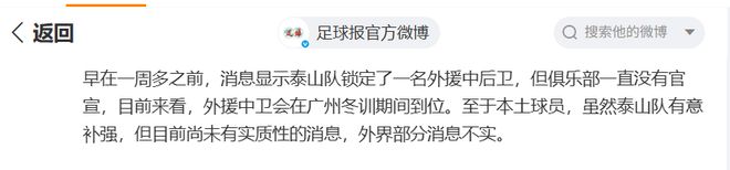 根据《足球报》的爆料,中超老牌豪门山东泰山队早在一周之前,就已经锁定了一名中场外援,但是俱乐部并没有官宣这一消息。这名外援具体是谁,暂时不得而知。不过,这名外援中场会在广州冬训期直接与泰山队汇合。