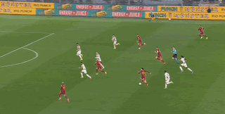 第39分钟,皮西利分球到左路,韦斯利调整后右脚兜射,皮球划出一道美妙的弧线,直挂球门右侧死角,佩林鞭长莫及。罗马1比0领先。