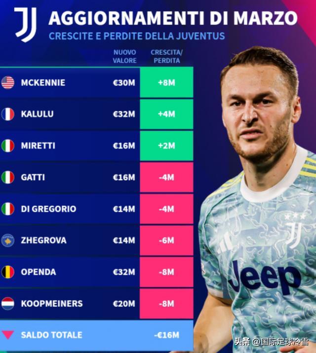 我个人认为:国米如今身价下滑力度,要比意甲其他球队更大,根本原因还是前几个赛季,国米因为3年2进欧冠决赛,所以很多球员的身价提升很大,而随着本赛季欧冠成绩的下滑,前两年的涨幅,就会下跌一些。