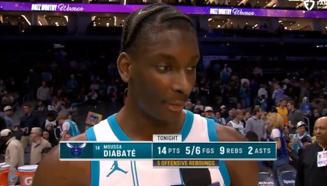 这关键就是大中锋迪亚巴特,苏既然很多人提黄蜂只会提到克神和三球,但迪亚巴特的崛起是他们成功关键。后者的前场篮板占比为总篮板50%。