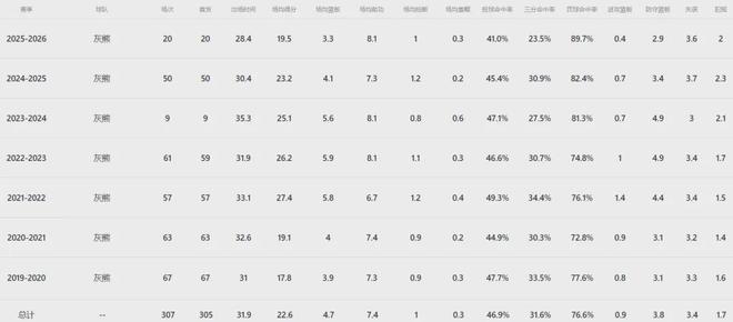 相关数据统计显示,莫兰特自22年7月份与灰熊达成五年1.93亿美元顶薪提前续约合同之后便沦为隐形人,23-24赛季因两度持枪被禁赛25场+右肩受伤只出战9场,24-25赛季打打停停披挂上阵50场,本赛季如上所述才打了20场,那么这三个赛季合计仅仅亮相79场比赛。