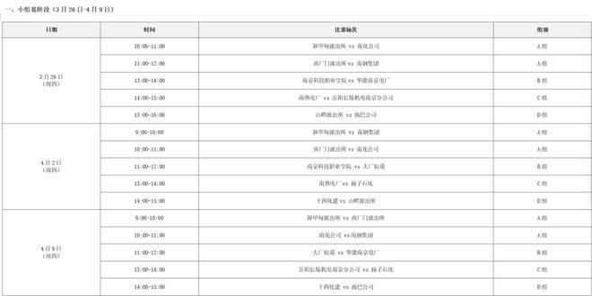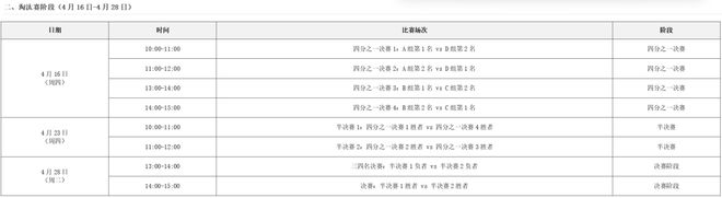 比赛具体赛程安排:
